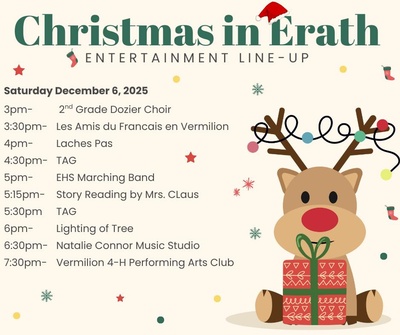 ✨ FREE Community EventGet ready for a magical evening in Erath as the town comes alive with holiday cheer! Bring your family, grab your friends, and enjoy a full lineup of Christmas fun, local performances, and festive activities for all ages.